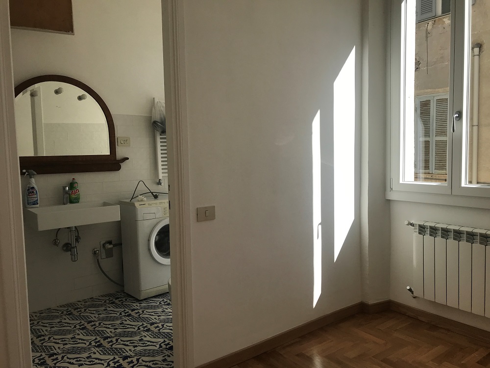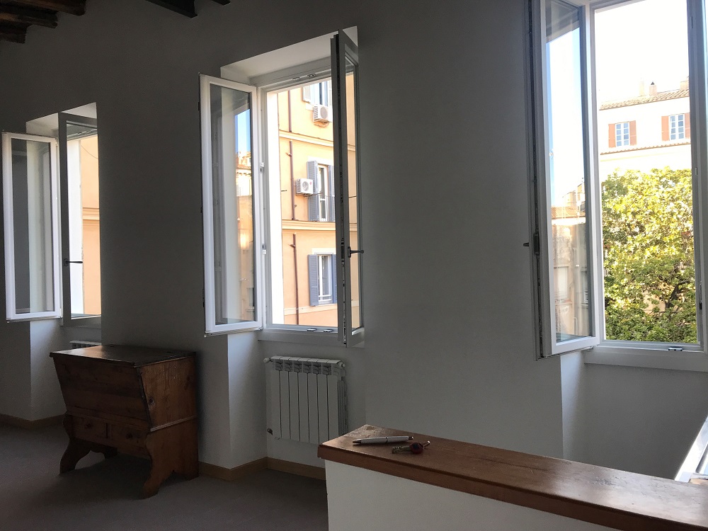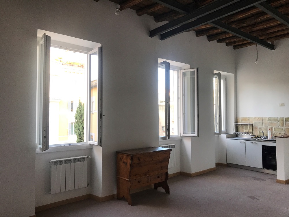 In a side street of via Giulia, very close to Castel Sant'Angelo and Piazza Farnese, newly refurbished flat of 75 sqm, on the third floor with lift. Bright and quiet, has a living room and kitchenette, cealing with beams, one bedroom with anteroom and a bathroom. A wonderful view overlooking the garden and a second view overlooking the roofs of Via Giulia. Autonomous heating, air conditioning and armored door. Monthly rent Euro 1650 - Energy Class G.